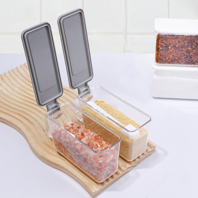 マルチグリッド調味料ボックス 防湿 コンビネーション調味料ボックス スプーン付き キッチンソルトケース スパイス調味料ボックス 多格 調味料ケース 防湿 ユニットスプーン付き 香料ケース 調味料ケース