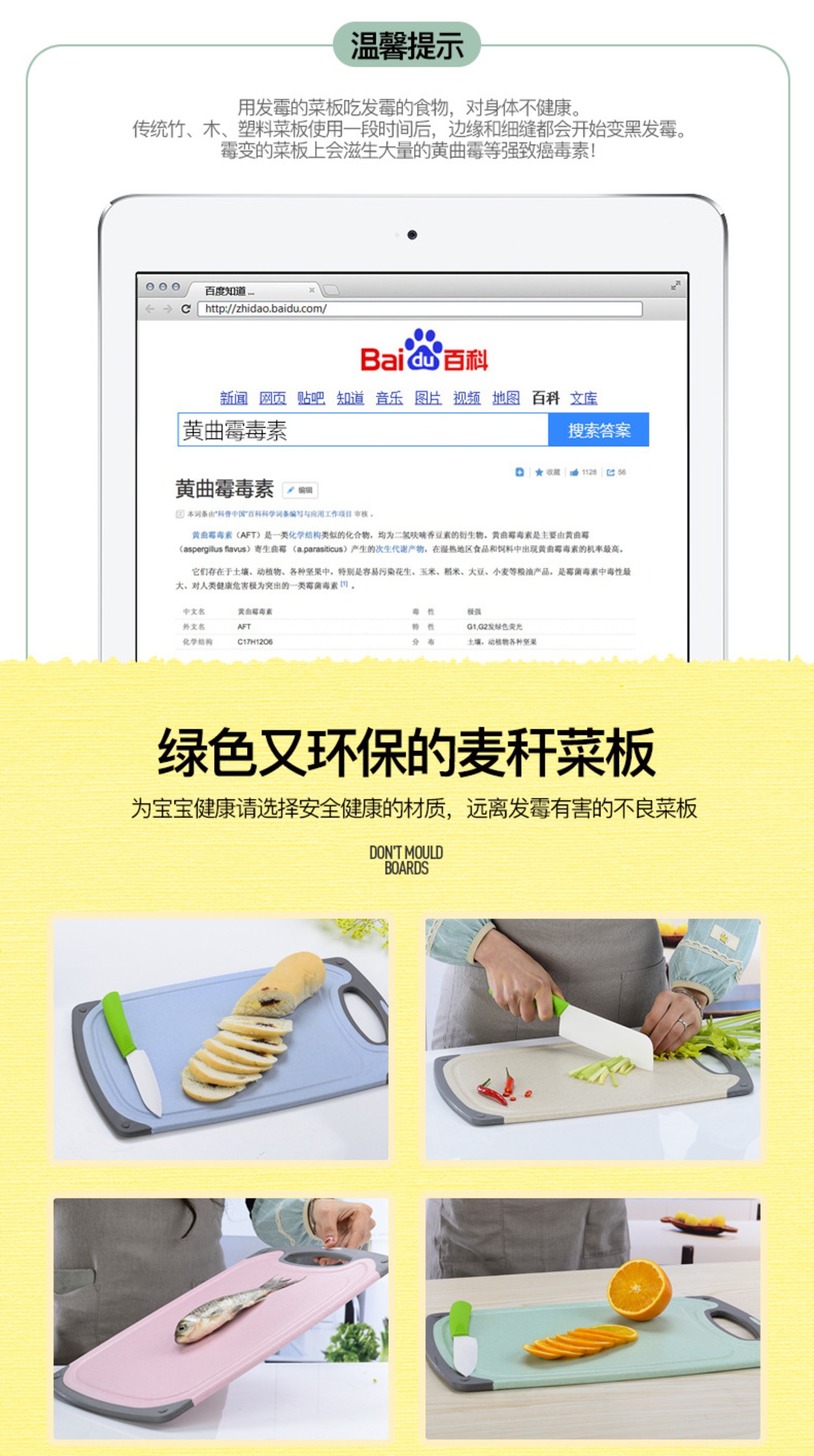 小麦繊維を使用しているため、非常に軽量で薄いデザインが特長です。簡単に持ち運ぶことができ、収納も抜群!210×350mmのスモールサイズで、限られたキッチンスペースにフィットします。