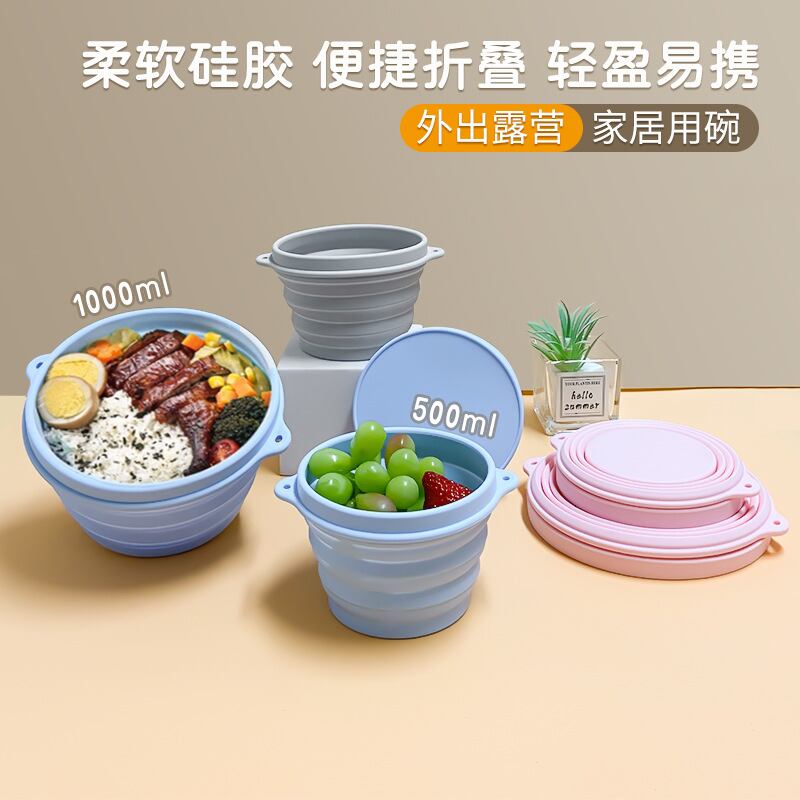 【便利な折りたたみボウル シリコン 500ml 蓋付き】