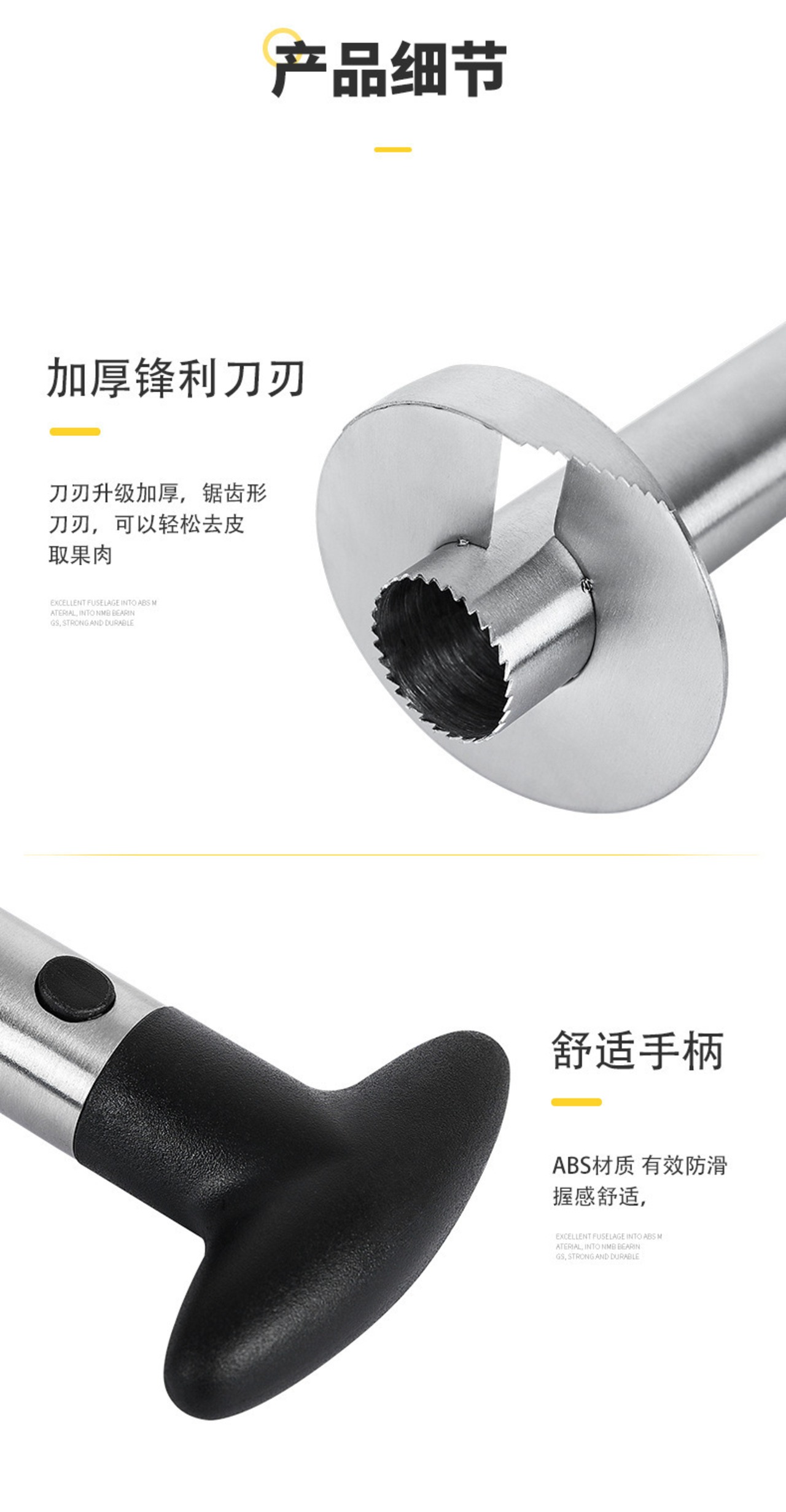 こちらのパイナップルカッターは、ジューシーなパイナップルを手軽に輪切りにするための必須アイテムです!持ちやすいグリップで、簡単にパイナップルを美しくカットし、芯抜きも一緒に行える優れた機能を備えています。忙しい日常でも、手間いらずで素敵なデザートを楽しむことができます!