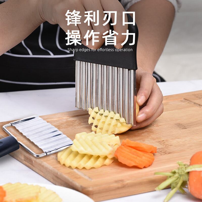 こちらのポテトカッターは、ステンレス製で耐久性があり、美味しいフライドポテトを簡単に作ることができるキッチンガジェットです!波型の刃が特徴で、カットしたポテトが食感豊かに仕上がります。手軽におうちで本格フライドポテトを楽しむことができます。