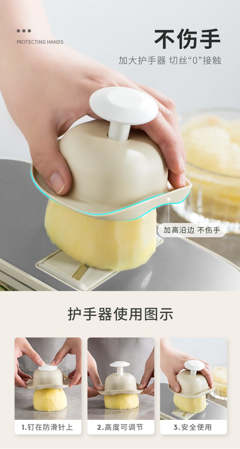 このスライサーセットは、安全ホルダーが付いているため、手を傷つける心配がありません!直感的に使いやすいのが特徴です。また、様々な幅にスライスできるので、サラダや付け合わせ等、多彩な料理に活用できます。
