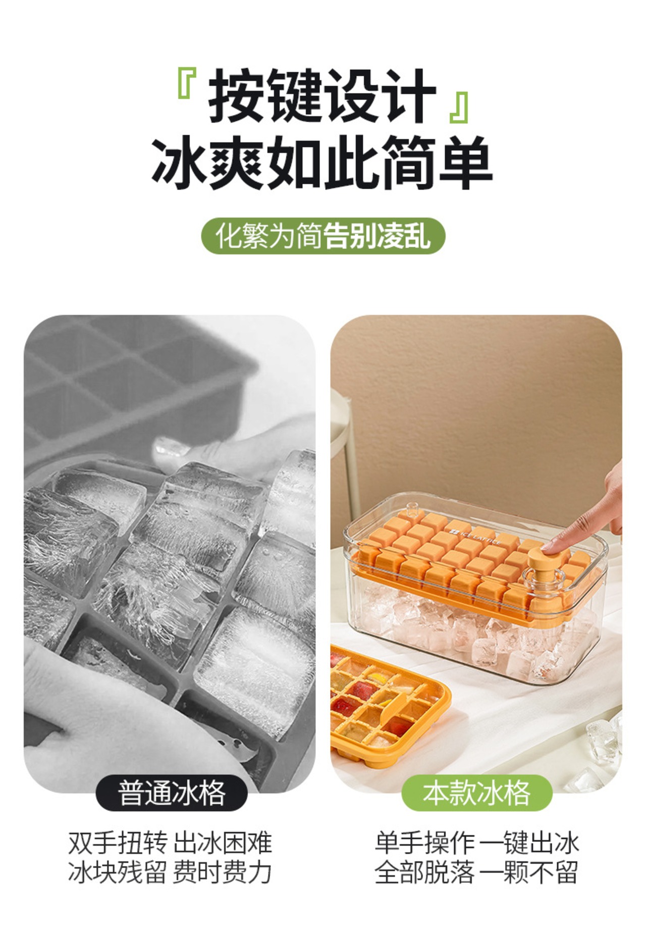 こちらの製氷機は、家庭用に最適な大容量の製氷皿です!二段のワンタッチ設計により、簡単に氷を作ることができます。冷たい飲み物を楽しむ時に、素早く氷が必要な方にぴったりのアイテムです。
