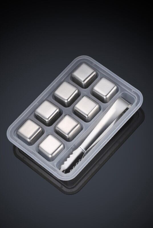 このステンレス製のフローズンキューブは、8個のセットにトングが付いており、簡単に取り扱えます。美しい金属の輝きがあなたのテーブルをおしゃれに演出します。取り出しもスムーズで、あらゆる飲み物に適応できます!