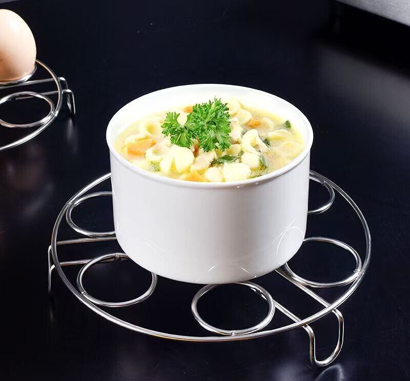 この蒸し器ラックは、卵をしっかりと固定するエッグスタンドの機能を備えています。複数の食材を同時に蒸すことができ、時短調理にも役立ちます。