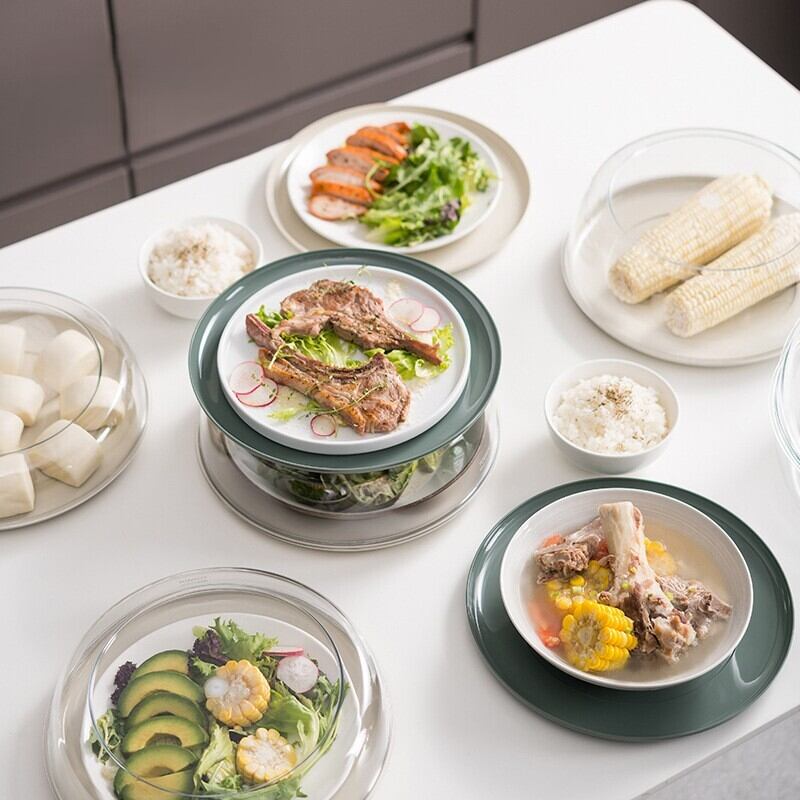 このフードカバーは、特に家庭用の収納に最適な設計が特徴です。食材や残り物をしっかり覆い、空気による劣化を防ぎます。積み重ね可能なため、収納スペースを有効に活用でき、キッチンをすっきり保つことができます!