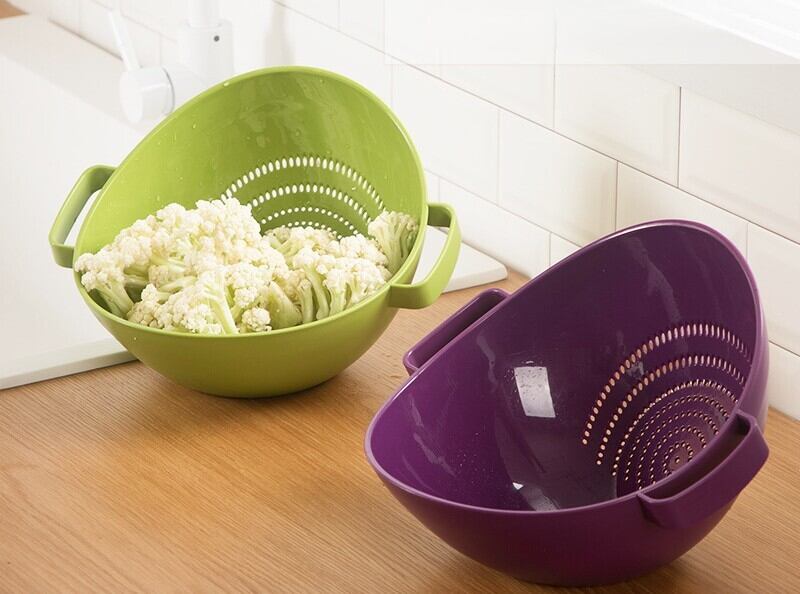 【便利でカラフルな持ち手付きプラスチックざるの登場!】