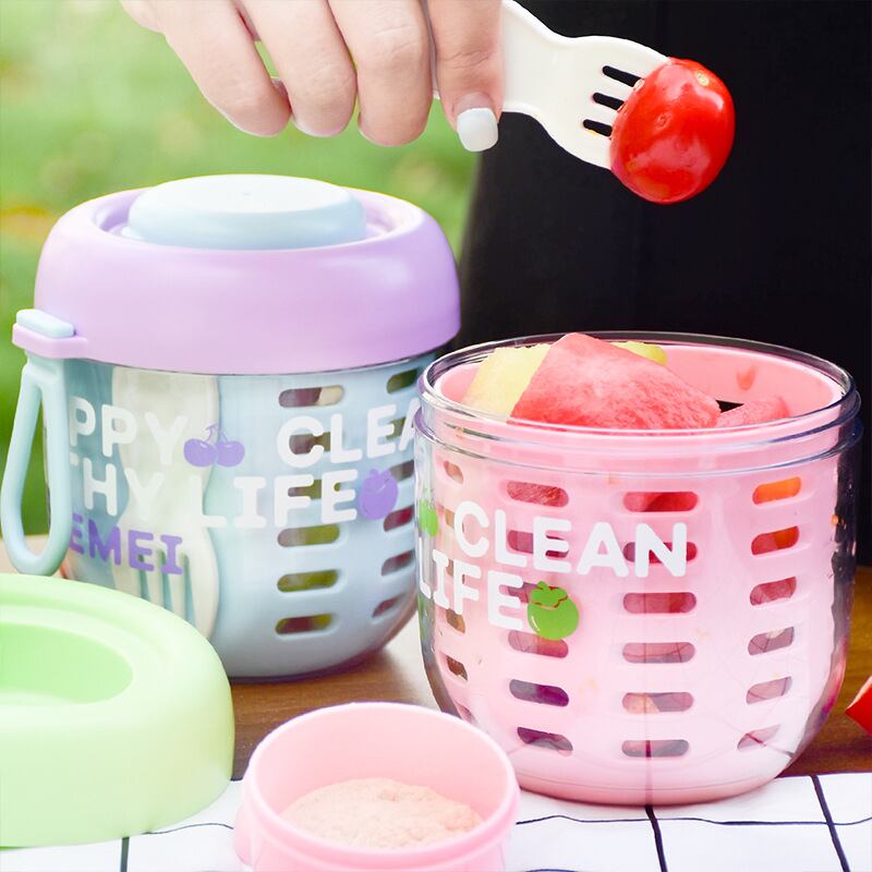 こちらのポータブルフルーツカップは、外出先でも新鮮なフルーツやサラダを手軽に楽しめる便利なアイテムです!フォーク付きで、朝食やランチにも最適なデザインになっています。
