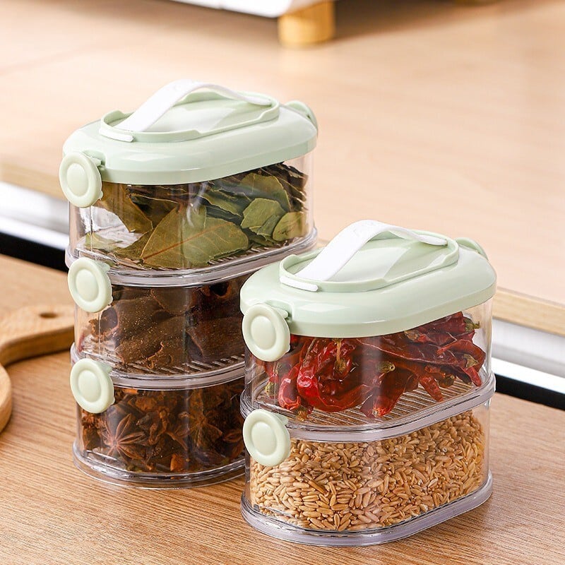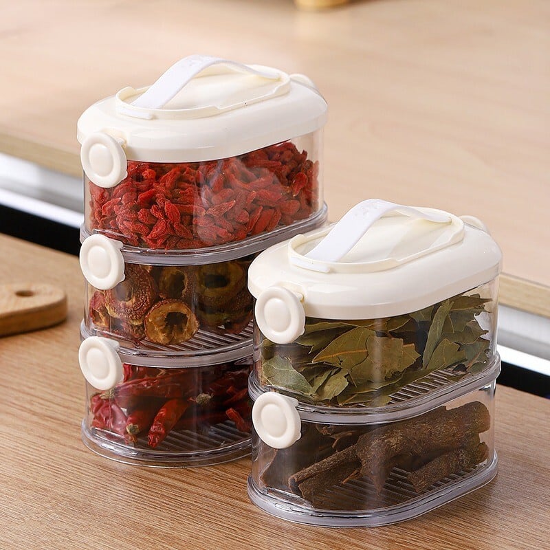 こちらの食品保存ボックスは、スパイスや調味料をしっかりと収納できる五層五段の便利なアイテムです!積み重ねが可能な設計で、キッチンのスペースを有効に活用し、整理整頓が非常に簡単に行えます。