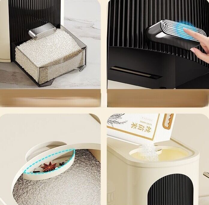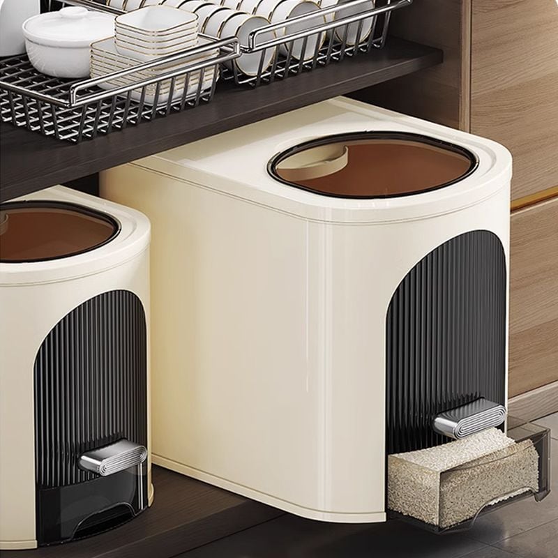 米びつはキャビネットに簡単に埋め込むことができるデザインになっており、キッチンの整理整頓をサポートします。忙しい毎日の中でもスムーズに米の管理が可能です。密閉性にも優れているため、湿気や虫の侵入を防ぎ、安心して長期間ご利用いただけます。