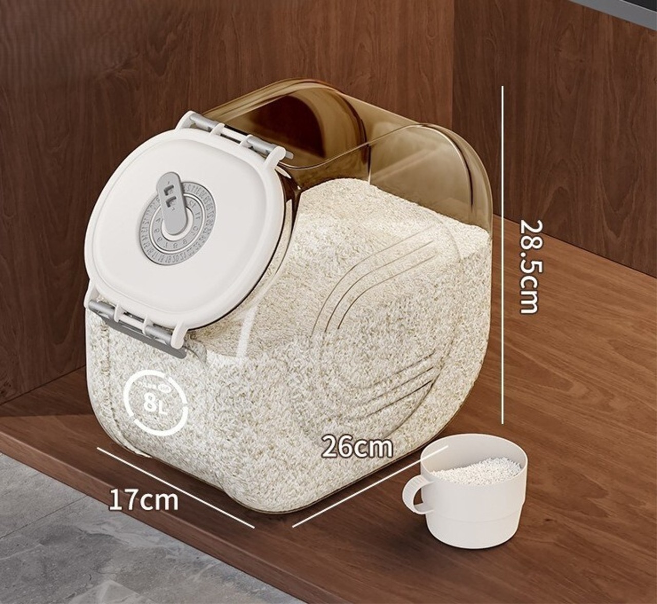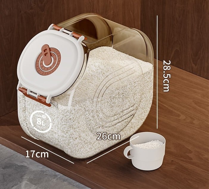 この米びつは、米の鮮度を保つための特別な設計が施されています。8Lの大容量で家族の食卓をしっかり支え、いつでも美味しいご飯を楽しむことができます。保管中の湿気や虫から米をしっかり守り、安心してご使用いただけます。