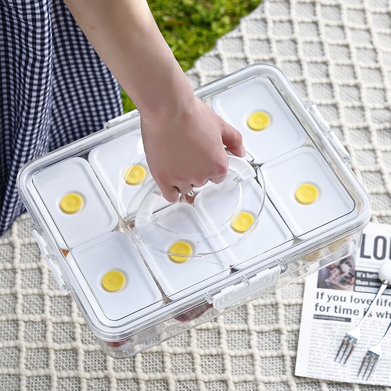 毎日の食卓に彩りを添える、ポータブルな食品保存タッパーが新登場!フルーツやサラダを新鮮に保つための8グリッドデザインで、冷蔵庫の中でも整理整頓がしやすくなります。持ち手付きの便利な設計で、お出かけにもぴったりです!