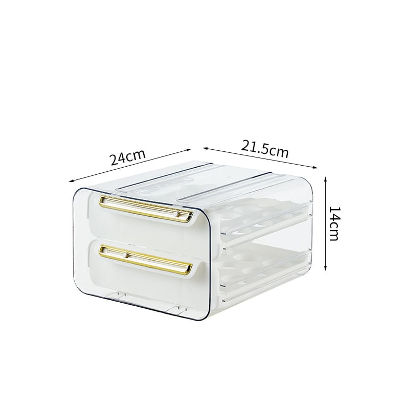 この卵ボックスは引き出しにぴったり収まるコンパクトなサイズで、冷蔵庫のスペースを効率よく活用できます。透明素材を採用しているため、中の卵の状態を一目で確認できるのも大きなポイントです。美しいキッチンのスタイルを実現し、整理整頓を手助けします。