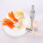 料理をもっと楽しく、便利にするマストアイテム!このピーラーは、野菜や果物の皮をスムーズにむくことができる多機能なキッチンツールです。おろし金機能も搭載しており、さまざまな料理に大活躍します。