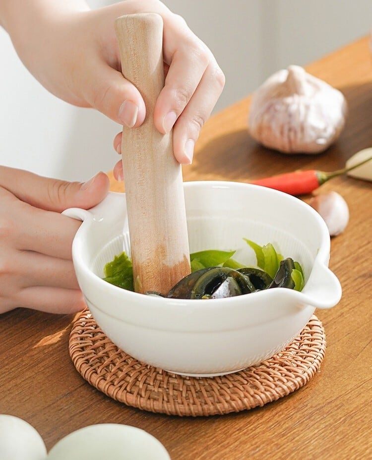 このすり鉢は、胡麻をしっかりとすりつぶすための専用設計。すりこぎを使って、手軽に滑らかなペーストが完成します。和食やアジアン料理には欠かせない薬味として、様々な料理に使える一品です。自家製の香ばしい胡麻ペーストで、食卓を華やかに彩りましょう!