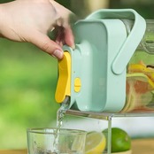 このドリンクケースには、使いやすい蛇口レバーが付いています!飲みたいときにさっと操作でき、注ぎやすさを実現しています。アウトドアやバーベキューの時にも、手軽に冷たい飲み物を提供できる優れたデザインです。