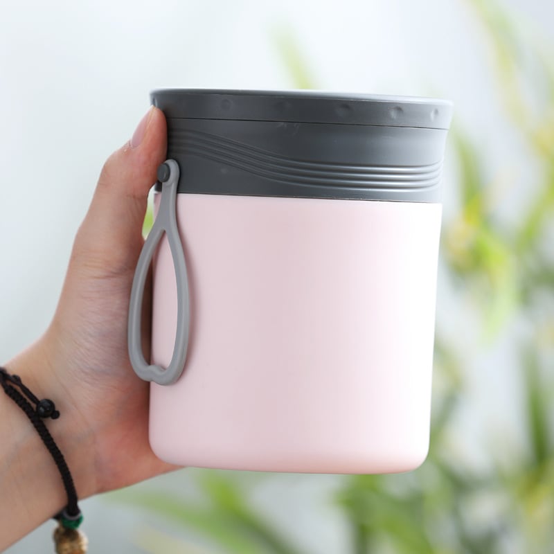 こちらの商品は、ランチやおやつをかわいく収納するためのプラスチックフードカップです!柔らかなピンクの色合いが特徴で、シンプルながらもおしゃれなデザインが魅力です。蓋付きなので、スープやお弁当を安全に持ち運べます。
