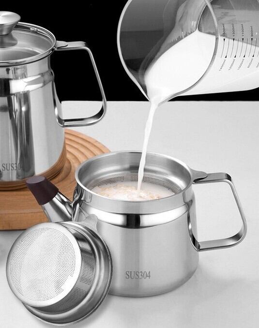 ステンレスセパレーターポット 1.4L Sサイズ 豆乳ポット 超微細メッシュフィルター 家庭用 ジュースフィルター フィルター付きオイルストレージ オイルポット オイルタンク | kitchengoods