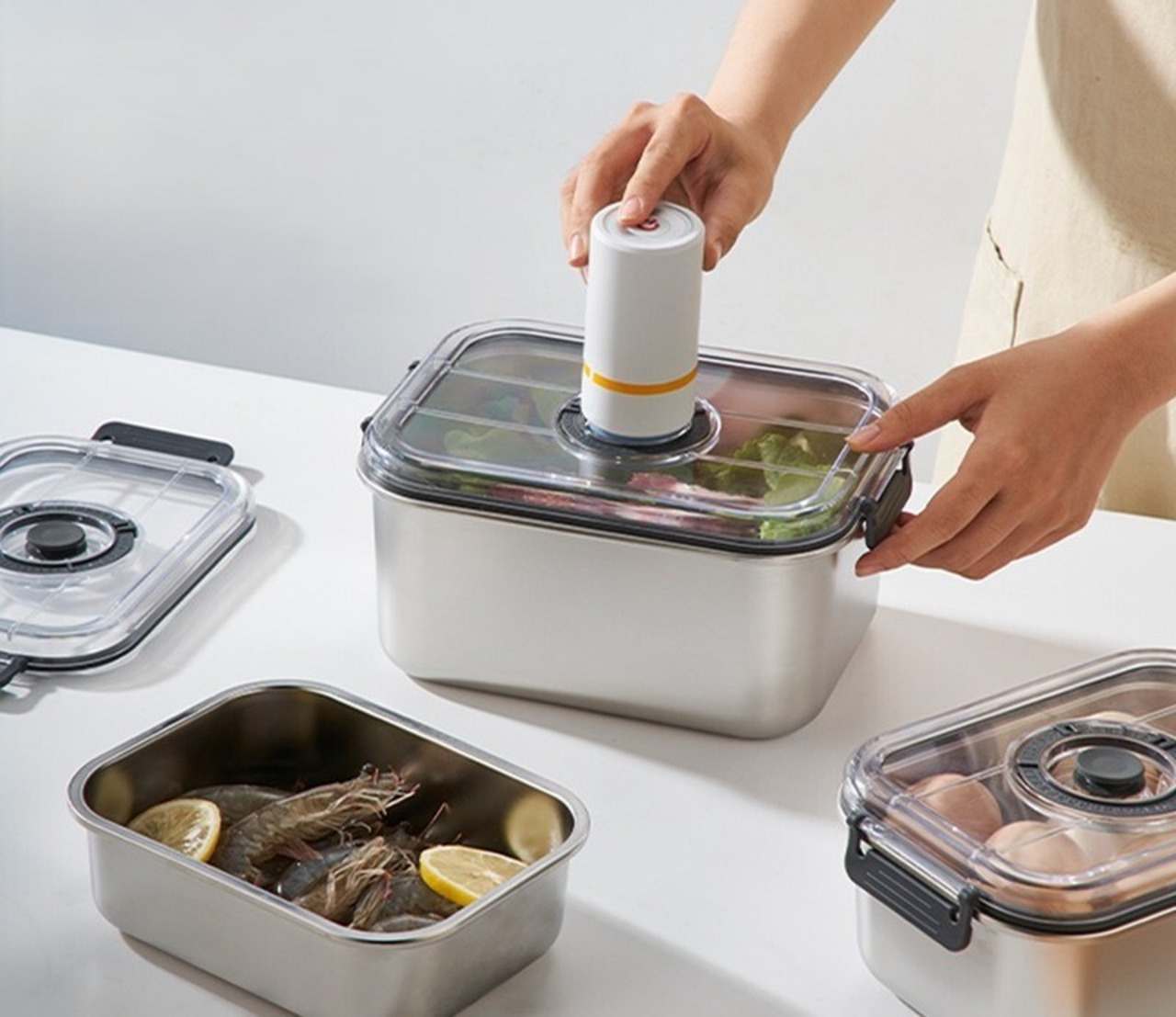 このボックスは、高級ステンレス素材を使用しており、耐久性と衛生面に優れています。密閉設計によって、食材の酸化を防ぎ、長期間にわたり新鮮な状態をキープします。また、真空機能が搭載されており、空気を抜いてさらに鮮度を保つことができ、食材の管理が非常に楽になります。