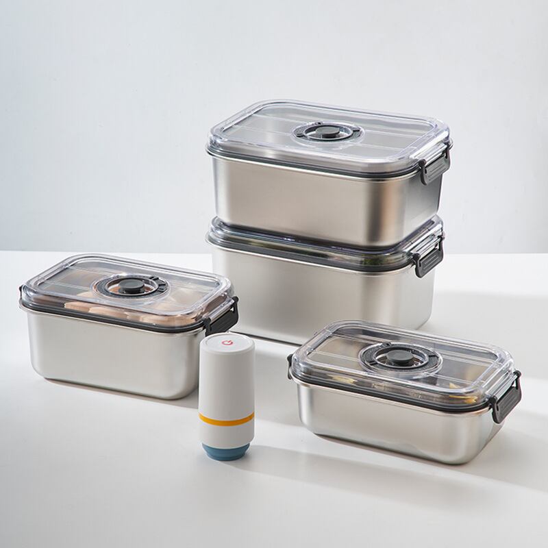 このボックスは、高級ステンレス素材を使用しており、耐久性と衛生面に優れています。密閉設計によって、食材の酸化を防ぎ、長期間にわたり新鮮な状態をキープします。また、真空機能が搭載されており、簡単に空気を抜くことができるため、食材の管理がとても楽になります。