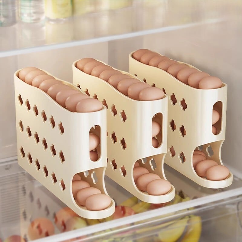 こちらの商品は、卵を新鮮に保ち、便利に収納するために設計された卵収納ボックスです!自動卵ローラー機能を備えたこのエッグケースは、冷蔵庫のサイドドアにぴったり収まるサイズで、卵の整理整頓が簡単に行えます。